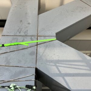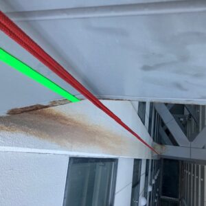 ロープで近づくことで、地上からは見えない細かな劣化まで確認できました。