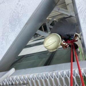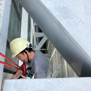 泉佐野市内のホテルにて、ロープアクセスによる高所設備点検を実施しました。